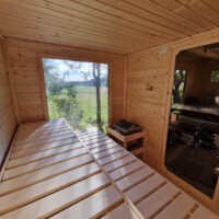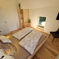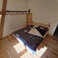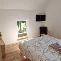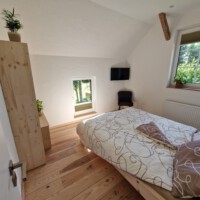 Nun zu unseren Schlafräumen. Es gibt zwei Doppelzimmer mit jeweils einem Bett 160x200cm und ein Dreibettzimmer mit einem Etagenbett 90x200cm und ein kleines Bett 65x180cm. Alle Schlafräume sind mit einem TV ausgestattet.